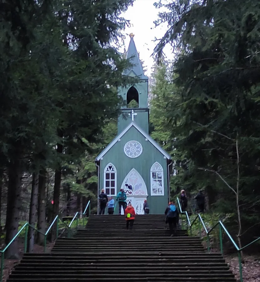 21. dubna 2023. Dopoledne Broumov - náměstí, klášter, hřbitovní kaple, vyhlídka Hladomorna. Večer - vigilie k Ticháčkově kapli a Čertově skále. Příjemné, odpočinkové.