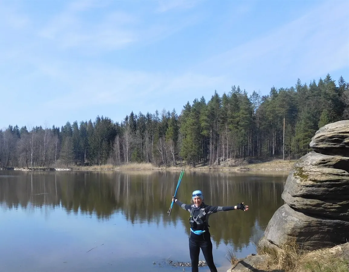 31. března 2021. V okrese Jeseník je lockdown radost. Sama, se samospouští. Vidnava. Habina - Venušiny misky - rybník U dubu - podél Černého potoka zpátky k Habině.