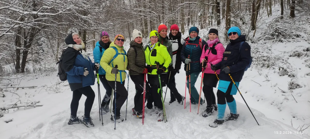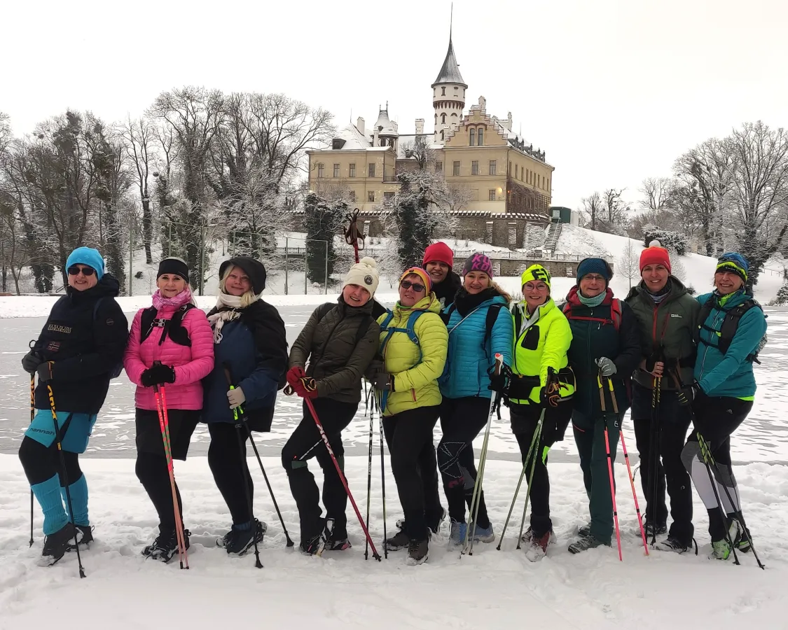 15. února 2026. Nordic Walking výšlap kolem zámku Raduň. Zimní pohádka, trochu Valentýn a trochu olympijské hry.