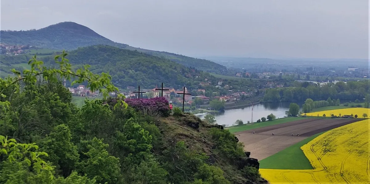 5. května 2022. Libochovany - Tři kříže - Kalvárie - Kamýk - Radobýl - Velké Žernoseky. 14 km jsme šli 6 hodin. Kochali jsme se.