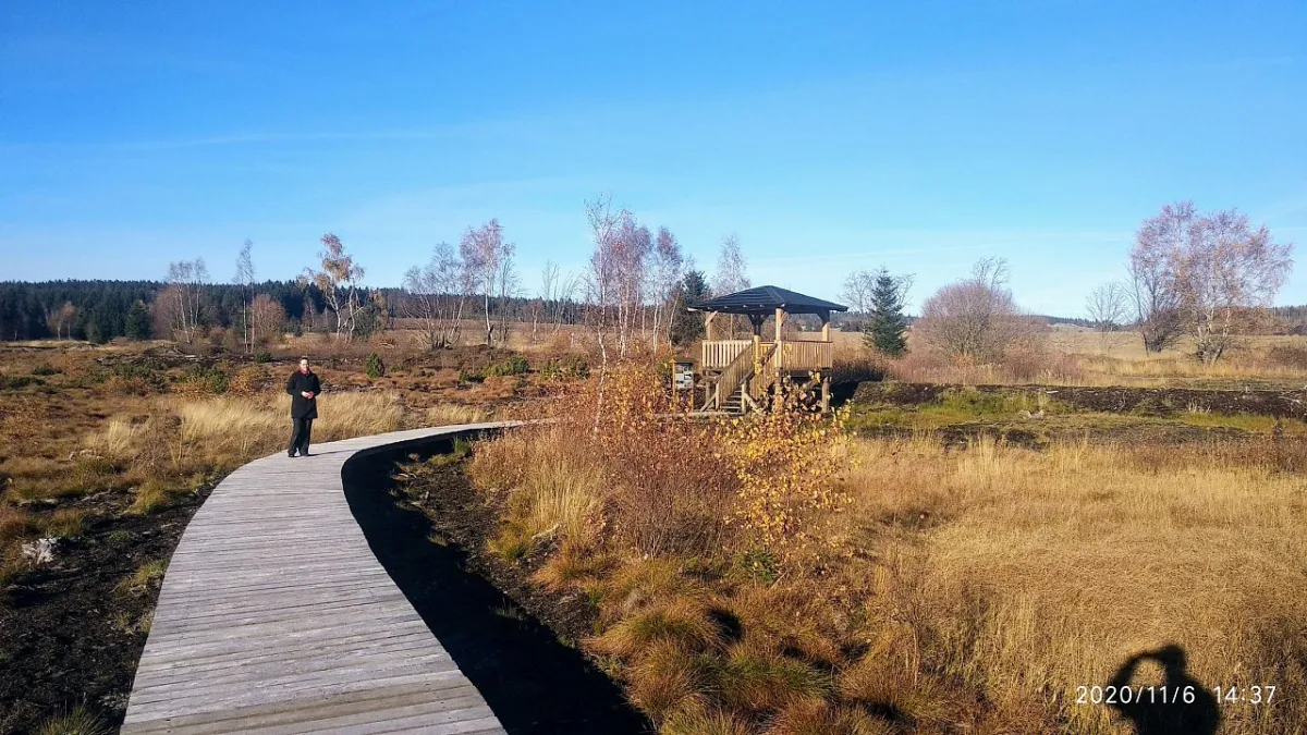 Druhá etapa, pátek 13. června 2025: Plešivec – vyhlídka Švýcárna – Zálesí (u dolu Eva) -důl Rovnost – Skautský kříž – pod Božídarským Špičákem - Gunterova stezka – Božídarské rašeliniště – Boží dar. 18 km/450 m. Ubytování Boží Dar, hotel Anna.